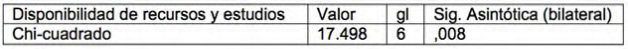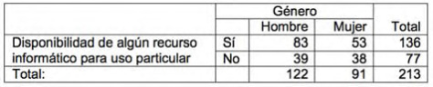 A medida que el nivel de estudios es superior, las personas mayores disponen de estos recursos en mayor porcentaje. Aunque no se presentan relaciones significativas con respecto al género, según indica la prueba Chi-cuadrado [?2(1)=2.165, p>.05] y Lambda de Goodman =0.000 lo verifica con un resultado igual a cero. Se presenta a continuación la tabla de contingencias.