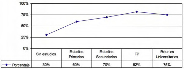 Se presenta información relevante sobre la relación en el uso de Internet con el nivel de estudios y el género. Es interesante, en este caso, resaltar la diferencia significativa entre hombres y mujeres sin estudios. Las mujeres mayores sin estudios (aunque saben leer y escribir) son las que menos uso hacen de Internet. Esto ofrece pistas para el diseño de estrategias políticas y programas sociales dirigidos, en especial, a las mujeres mayores sin estudios siendo el objetivo principal el uso de Internet por parte de las mismas. Resulta necesario, en la sociedad actual, potenciar el papel de las mujeres en el acceso y uso de las TIC, como medida de empoderamiento, tal y como se señaló en la IV Conferencia Mundial sobre la Mujer de Beijing (ONU, 1995). Se entiende como empoderamiento «la plena participación de las mujeres en condiciones de igualdad en todas las esferas de la sociedad, incluyendo la participación en los procesos de toma de decisiones y el acceso al poder» en la Conferencia de Beijing (ONU, 1995). En relación a las TIC, esto implica la mejora de habilidades, conocimiento, acceso y uso de éstas. Entre las mujeres con un nivel de estudios más altos se aprecia el uso y su aplicación en los quehaceres cotidianos.