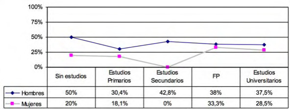 Se puede afirmar que las mujeres realizan esta actividad en Internet (formación) en menor medida que los hombres, existiendo el mayor contraste entre los mayores (hombres y mujeres) con estudios secundarios.