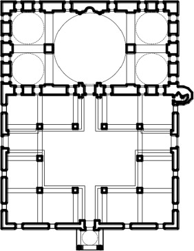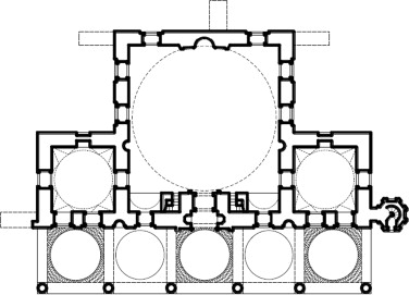Figure 2. Single dome layout (nuclear dome layout); Orhan Gazi Mosque. |
