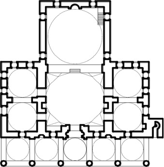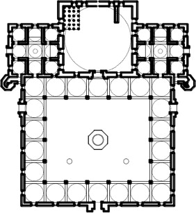 Figure 7. Earring dome courtyard layout; Sultan Bayezid Mosque. |
