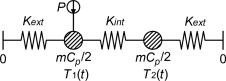 where Ts 1 and Ts 2 are the steady state temperatures at corresponding node (K ), tc and tc ' is time constants (s ), Kext is the conductances to the exterior (W/K) and Kint is the conductance from one side of the container to the other (W/K).