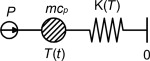 where m is the mass (kg), cp is the heat capacity (J/kg/K), T is the temperature (K), t is the time (s), P is the power input (W) and K (T ) is the conductance to the surroundings (W/K).