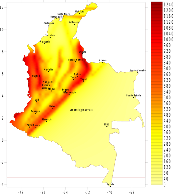 Salgado M. 2010. Evaluación probabilista y espectral de la amenaza sísmica de Colombia: Estudio general con fines de diseño sismo resistente. Universidad de Los Andes. Bogotá, Colombia.