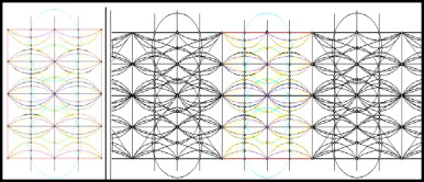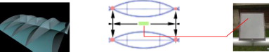 Fig. 4. Surface typologies and the derived from the initial curve networks. The surface assemblage: the membrane, the strata at two extreme stages. Left: minimum expansion; Right: maximum expansion. |