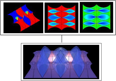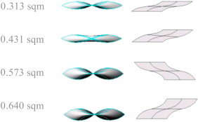 The membrane based area variation, derived from the initial curve network displays the following volumetric expansion sequences (Fig. 5 ).