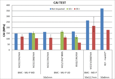 Mechanical testing (tensile and Compression After Impact, CAI), considering different variables (multi-ply vs. mono-ply, multidirectional vs. unidirectional, fiber or chip length, raw prepreg type), were also performed and results compared with the reference HexMC® (molding compound material made of chopped virgin prepreg, with Standard Modulus carbon fiber). The main outcomes of the reused material mechanical behavior are: