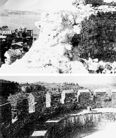 The chronology table (Table 1 ) shows that numerous attempts to restore Rumeli Hisarı were undertaken. The restoration strategy for the castle should include an initial assessment of these attempts. Ayverdi and Gabriel conducted extensive building surveys on Rumeli Hisarı. Other surveys from archives and photographic evidence have also been gathered. Fig. 9 shows two photographs related to the history of castle. Conferences may also be organized to focus the academic studies on the castle and to understand the building in depth (Liu, 2013 ).