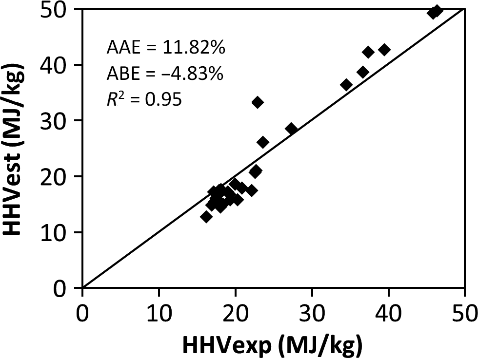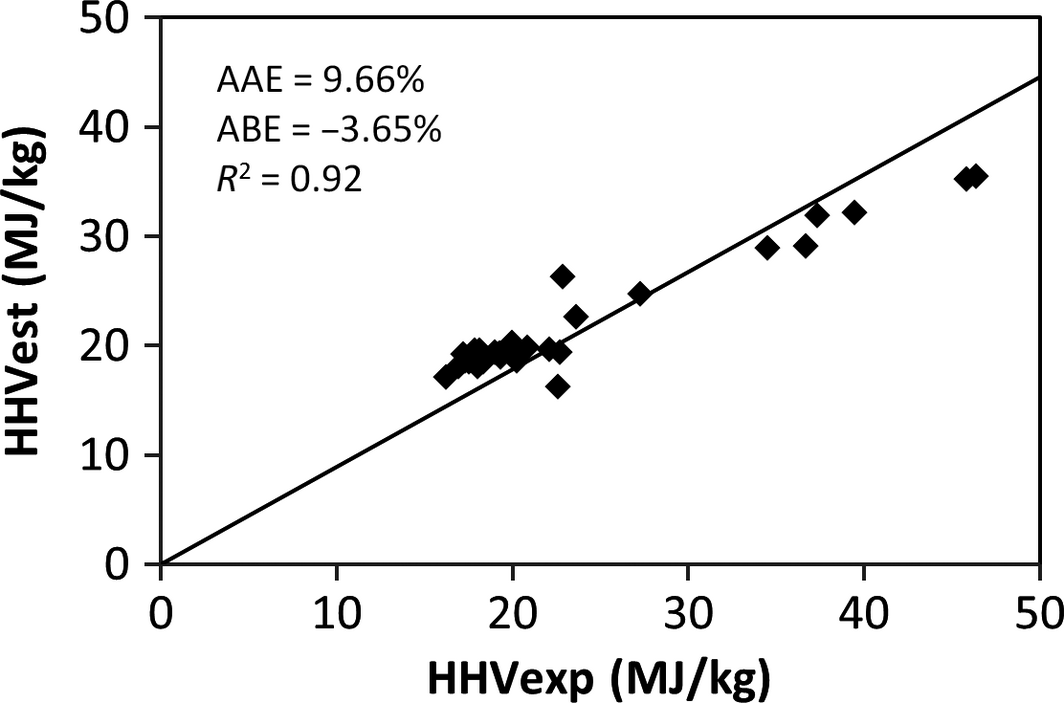 | 3. | HHV = a0 + bH + cO + dN + eS + fCl | Based on Changs criteria | [23] |