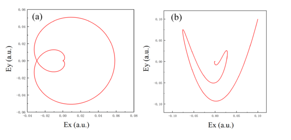 Correspondingly, the PMDs at these two moments are presented in Figure 2(b) and (c). In Figure 2(b), we can see many crescent interference structures, which is corresponding to subcycle interference (SCI) with electron wave packets (EWPs) from different half cycle within one optical cycle. Differently, for the situation (Figure 2(c)), many ATI (above-threshold ionization)-like structures emerge, this indicates that intercycle interference (ICI) with EWPs released from different laser optical cycles starts to dominate [37]. So far we can say that, the time-resolved changing of the interference type from only SCI to SCI+ICI for a 2-cycle CP laser pulse results in the drastic decrease of in Figure 3.