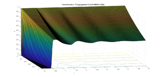 Ahora podemos graficar en función de y girar los ejes para ver en función de . Esto se representa en las figuras 10. Una vez que se determina en función de , podemos graficar la concentración en función de , dada en la figura 11.