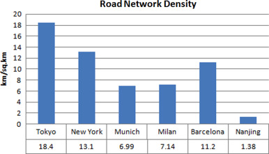 Figure 7.. Comparative data on road network density of Nanjing with several developed cities (Li et al., 2000 ). |