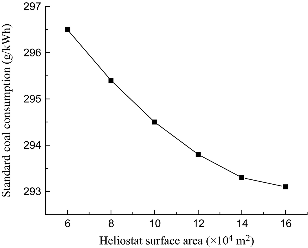 The simulation results are listed in Table 4. From Table 4, it can be seen that the net plant efficiency is increased by 1.07% and the standard coal consumption declines to 7.7 g/kWh correspondingly due to the aid of solar energy.