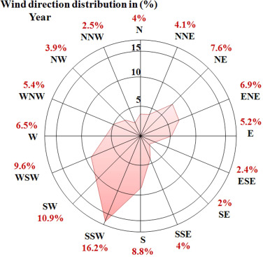 • Vavg probability at exploited wind directions (±45° from the SW wind direction)=0.52 (calculated from the wind rose diagram of Brixton, London in Fig. 7 ).