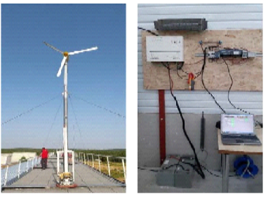 En colaboración con el CEDER-CIEMAT en Soria, se fabricaron palas eólicas de 1 metro de longitud con la siguiente configuración para cada concha: 45° de fibra de carbono/0° de fibra de vidrio/0° de fibra de carbono/0° de fibra de vidrio (45C/0G/0C/0G), con una proporción de fibra de aproximadamente el 70 % del peso total de la pala. Se realizaron ensayos estáticos y centrífugos no observándose diferencias significativas entre las palas fabricadas con Akelite y ésas fabricadas con una resina epoxi Sicomin típicamente usada en la fabricación de palas eólicas. Para comprobar el rendimiento real, se instalaron dos palas Sicomin junto con una de las palas de Akelite, en un pequeño aerogenerador de 1 kW instalado en la azotea del edificio del CIEMAT para comprobar algunos parámetros de potencia, funcionalidad y seguridad, recogidos en la norma IEC 61400-2 (Figura 6). El aerogenerador funcionó de manera continua durante un período de 5 meses, manifestando un comportamiento normal sin experimentar problemas en su funcionamiento o aspectos relacionados con la seguridad y obteniendo curvas de rendimiento eléctricas con relación al nivel de carga de la batería, con resultados coherentes. Las palas con Akelite superaron los ensayos centrífugos y los de rendimiento en funcionamiento mostrando un comportamiento similar al de las palas con resina epoxi [7].