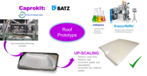 Actualmente, la tecnología CAPROCAST está a un nivel de desarrollo TRL7, que se ha demostrado mediante la investigación, desarrollo y validación de diferentes casos de usos industriales. Los diferentes proyectos realizados gracias a socios industriales han llevado al desarrollo de formulaciones aptas para (a) procesos de colada de piezas de un volumen de hasta 6 kilos, (b) procesos de T-RTM con tiempos de ciclo de 2 minutos, (c) procesos de rotomoldeo para la obtención de piezas huecas. Se ha validado el diseño especifico de moldes para estas tres tecnologías. En paralelo, se ha trabajado con suministradores de materias primas (compuestos químicos y fibras de vidrio y carbono) para el desarrollo conjunto de ensimajes compatibles con la reacción polimérica y que produzcan un adecuado anclaje entre fibra y matriz. Por último, se continúa trabajando con fabricantes de máquinas industriales para llevar esta tecnología a la industria de una forma robusta.