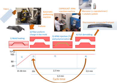 Como se ha comentado, las matrices termoplásticas ofrecen beneficios en reciclabilidad, soldabilidad y termoformabilidad sobre las matrices termoestables, pero, por otro lado, sus elevados puntos de fusión y sus altas viscosidades en fundido hacen necesarias altas temperaturas y presiones en sus procesos de fabricación.