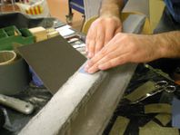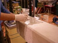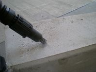 Otro aspecto que garantiza una mayor adherencia entre el hormigón y el FRP es tratar previamente la superficie del elemento a reforzar antes de la aplicación de la resina [17]. Entre los procesos a realizar destacan la abrasión de la superficie del hormigón mediante un chorreo de arena o agua, la posterior limpieza de esta superficie y la aplicación de un producto polimérico llamado primer que penetra en el hormigón y mejora la compatibilidad química entre el sustrato inorgánico y el adhesivo orgánico. Por último, se aplica el adhesivo sobre el FRP y sobre la superficie de hormigón tratada previamente, para finalizar con la fijación del refuerzo a la estructura existente.