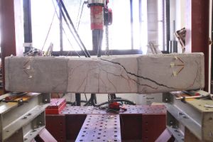 La viga rompió por la zona donde el tramo a cortante es mayor (zona 2). Este hecho fue debido a que la configuración del ensayo hizo que en la zona 1 se desarrollaran en el hormigón distribuciones de tensiones en forma de bielas a compresión debidos un efecto de ménsula corta, obteniendo una resistencia a cortante mayor a la esperada en este tramo.