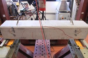La viga V-CONTROL fue el único espécimen ensayado sin la aplicación de refuerzo TRM. La Tabla B.2 resume los resultados obtenidos en el ensayo realizado en fecha 19/07/2012. Este espécimen colapsó de forma frágil, desarrollando una fisura a cortante desde la sección de aplicación de la carga hasta el soporte, evitando la zona del armado transversal central (Figura B.18).