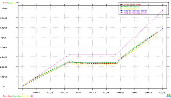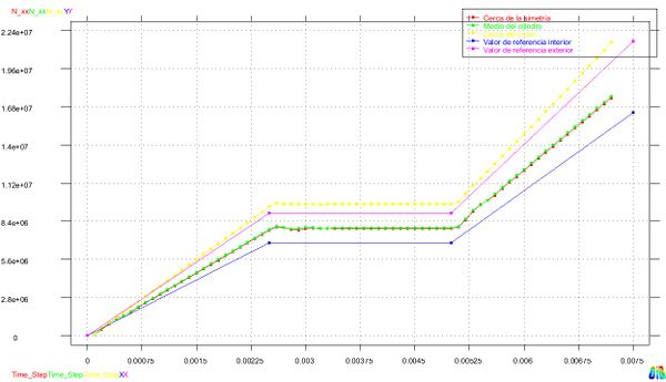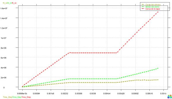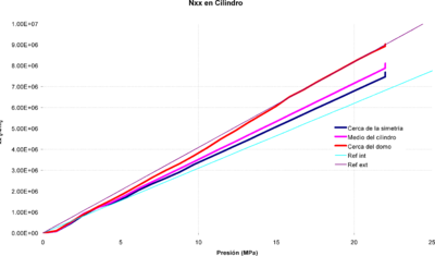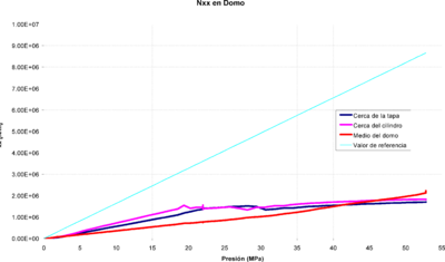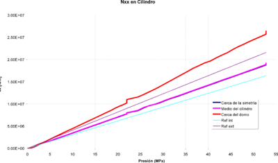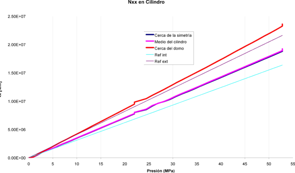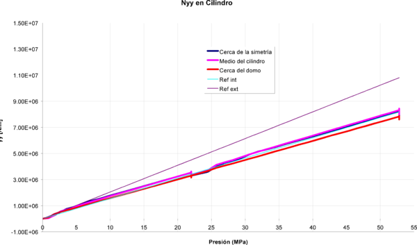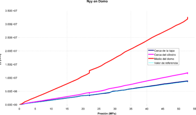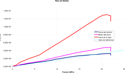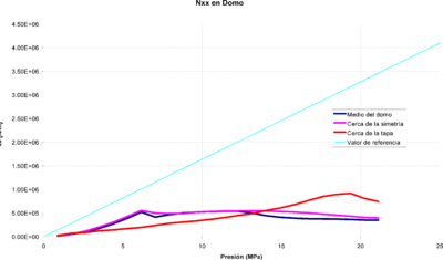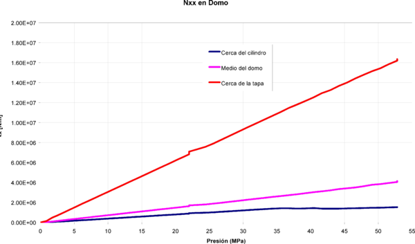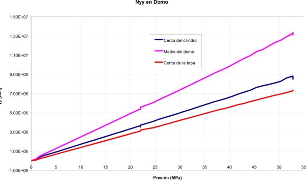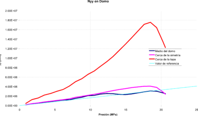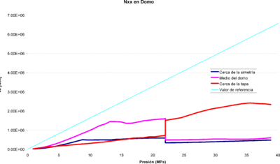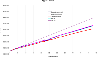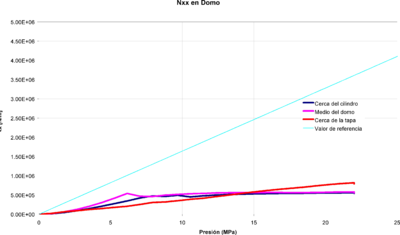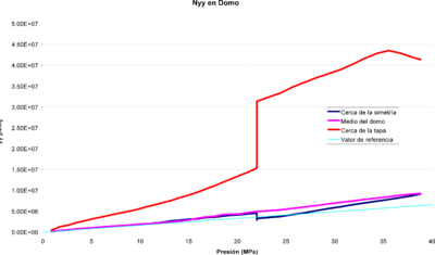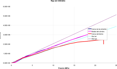 A partir de los valores de Nyy que se muestran en la gráfica para la presión nominal (t=0,0025 segundos) se encuentran los valores de la presión interior del domo y del cilindro: