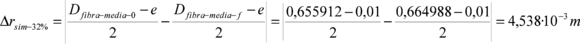 A partir del diámetro inicial y final obtenido en la simulación se obtiene el incremento de radio mediante: