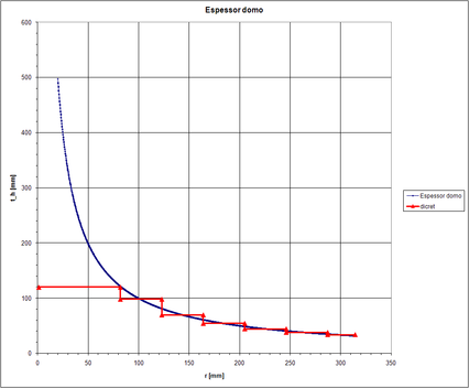 Debido a que la simulación llega a daño antes de llegar al estado de carga nominal, se ha realizado un cálculo no definido en [3] para conocer cuál es el valor del incremento de radio, que en base a los cálculos analíticos, debería tener el domo.
