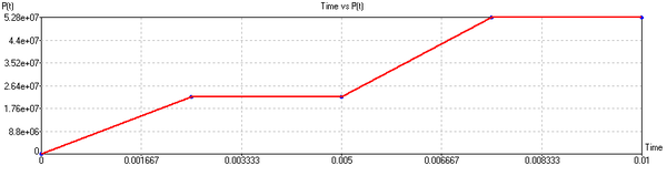 La condición de carga informada en todas las simulaciones es una presión interior en función del tiempo según la curva de la figura siguiente: