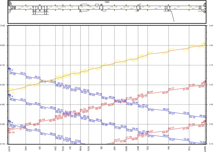 Timetable diagram of ABO-KIR railway line for Alternative (Scenario-5).