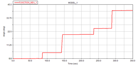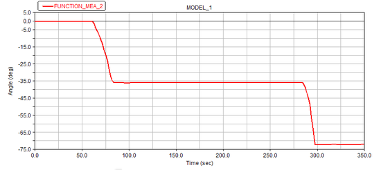 It can be seen from the image that the sliding sleeve started to move around 55 s, with the maximum velocity of 0.009 m / s and the maximum acceleration of 0.092 m / s2. When the external load decreased, the sliding sleeve displacement decreased by about 0.01 m under the action of the reset spring, and remained unchanged. It proved that the fixed sliding sleeve had fixed the position of the rotating sliding sleeve at this time. The angle change of the rotating sliding sleeve corresponded to the time of the sliding sleeve displacement change. When the sliding sleeve displacement reached the maximum, 5° deflection occurred. When the sliding sleeve was locked and unlocked, 15° deflection occurred. Since the number of layers was four, there was another vacancy. Therefore, for each complete motion of a period, the rotation angle of the anti-cylindrical cam should be 72°. When the selection layer was successful and the selection layer was finished, it corresponded to half a period, and the angle was 36°.