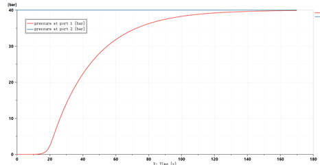 As shown in Figure 2, the pressure at port2 port was always maintained at 40 bar, while the pressure at port1 port had hardly changed in the first 15 s, proved that the pressure transmission time under this condition was at least 15 s. The pressure could reach about 40 bar at 160 s.