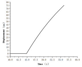 Figure 9 shows the time-displacement image of the sliding sleeve. Figure 10 shows the speed time image of the sliding sleeve. Figure 11 shows the acceleration time image of the sliding sleeve. Figure 12 shows the rotation angle change of the rotating sliding sleeve. Figure 13 shows the angle change of the anti-cylindrical CAM during the movement.