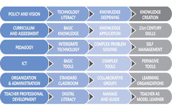 The goal of UNESCO’s ICT-CST project has been to produce the UNESCO ICT Competency Standards for Teachers (ICT-CST) framework shown in figure 2.