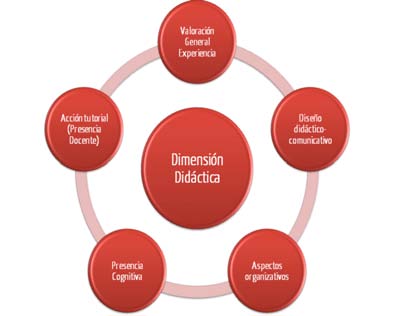 The educational activity carried out by means of the forum by the teachers of the course, the «teaching presence», is essential if the phase of the resolution and building of knowledge is to be reached. This didactic dimension entails the assuming of different roles by the teachers, such as debate facilitators, moderators, guides-advisers, experts answering individual and group questions, managers, etc. The study of this dimension includes all the categories and indicators in the teaching carried out in the formative action. It is important to stress that on the virtual forums studied a greater participation by students than by tutors has been detected, thus inverting the tendency in classroom teaching in which teachers intervene and participate more than students, concentrating more on the teaching process than on that of learning. It has even been affirmed that teaching presence is not restricted to the teacher and that students have at times taken on this role: