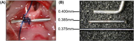 Now pin gauges for industrial use are commercially available, which can vary its size used for TAC operation in 0.005 mm increments. To determine which size of gauges is most suitable for TAC operation, we studied survival and severity of HF after TAC by using three sizes of gauges; medical needle with a 0.400 mm OD, pin gauges for industrial use with a 0.385 mm OD and a 0.375 mm OD.