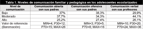 En términos generales, se encontró que la comunicación de los padres y profesores con los adolescentes se ubica entre los niveles bajo y moderado. Es decir, que la comunicación familiar y pedagógica es deficiente en este contexto afectado por problemas de violencia escolar. Por este motivo, los padres y las escuelas afectadas requieren mejorar la comunicación interpersonal con los estudiantes, más aún cuando los estudios revelan que los vínculos afectivos entre los estudiantes y los adultos en la escuela influyen de manera significativa en la conducta de los adolescentes (Jain et al., 2018). La comunicación orientada a enseñarle a los estudiantes a resolver pacíficamente sus conflictos (Jalón, 2005) y el involucramiento de las familias en la prevención de la violencia escolar (Valdez-Cuervo et al., 2018) contribuyen eficazmente a la reducción de las agresiones entre pares.
