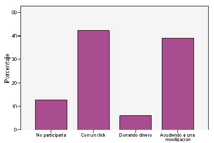 In the first part of this article, we stated that social networks go beyond simply being a method or a medium for communicating, and that they are also a method or a medium for social participation and global activism. The study results presented here confirm this since more than 80% of the young people surveyed channel through networks their response to campaigns that support or reject certain events.