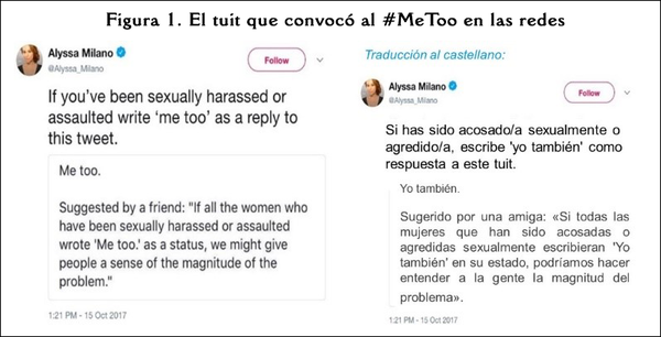 Este fue usado 12 millones de veces en las primeras 24 horas y compartido en 85 países durante el primer mes de la campaña (CBS, 2017). De esta forma, muchas mujeres comenzaron a compartir sus experiencias y a crear comunidades online de confianza, exponiendo la magnitud de la violencia sexual y condenando el patriarcado (Khomani, 2017). El movimiento tuvo un gran impacto en la industria audiovisual, con acusaciones de conductas sexuales indebidas por parte de figuras públicas en otras áreas (ej., música, educación, ciencia, política). Siguiendo a Chandra y Erlingsdóttir (2020: 1), «el movimiento ha proliferado en las redes sociales, yendo más allá de Twitter y llegando a las salas de estar y a los tribunales. Se ha extendido de forma desigual por todo el mundo (...) y ha interactuado con movimientos, luchas y resistencias feministas ya existentes».