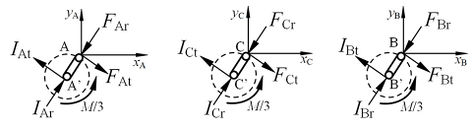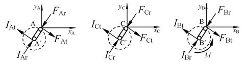 If crank BB' is used as the input shaft, and crank AA' and crank CC' are used as support shafts, the force model of each shaft is shown in Figure 3.