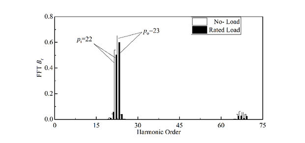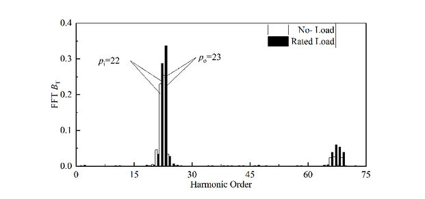 Figures 5 and 6 show the harmonic comparison of radial and tangential air-gap magnetic density of TRMG under no-load and load after Fourier decomposition.
