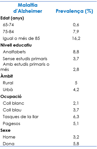 Pel que fa a la prevalença de la MA a Espanya es pot presentar el quadre següent establert el 2001 en funció de diversos criteris7