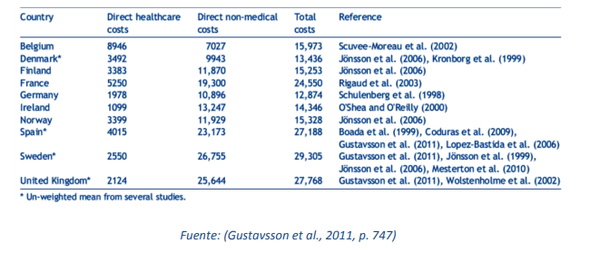Diversos estudis han incidit en l’anàlisi dels costos de l’Alzheimer i altres demències a Europa, com es pot veure en el quadre adjunt: