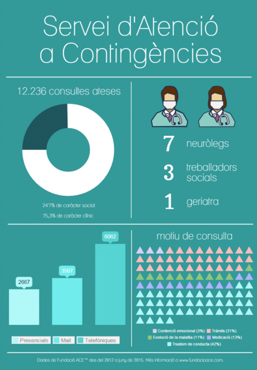Per oferir aquest servei 7 neuròlegs, 1 geriatra i 3 treballadors socials dediquen part del seu temps laboral a atendre aquestes consultes via telefònica, email o presencialment. Poden resoldre des de dubtes de amb la medicació fins a qüestions relacionades amb els tràmits legals per demanar ajuts de l’Estat, per exemple.