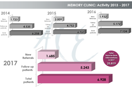 Des de la seva posada en marxa el 1995, la Unitat de Diagnòstic, ha atès prop de 25.000 persones. Cada any, es diagnostiquen uns 1.000 casos nous d’Alzheimer, aproximadament 250 casos d’altres demències i uns 600 casos de deteriorament cognitiu que encara no han arribat a patir demència. En aquesta Unitat es visiten més de 6.000 pacients cada any.