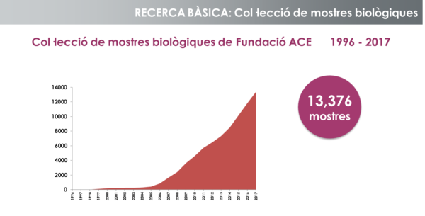 Una de les àrees d'investigació més rellevants correspon a estudis genètics, on Fundació ACE ha desenvolupat un banc de dades propi i que compta amb més de 11.800 mostres crio-preservades d’ADN, de sang congelada, de plasma i de líquid cefaloraquidi. Aquest repositori s’ha fet servir en més de 35 estudis internacionals i ha permès la identificació de molts gens relacionats amb els processos neurodegeneratius i la verificació o refutació d’altres.