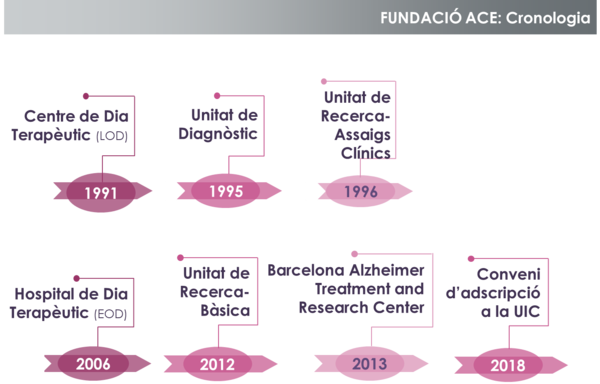 Fundació ACE, constituïda l’any 1995, va ser el primer centre de l’Estat espanyol creat amb l'objectiu de donar resposta a una necessitat social creixent: el tractament i l'educació de les persones que pateixen deteriorament cognitiu i demència, especialment la malaltia d’Alzheimer (MA).