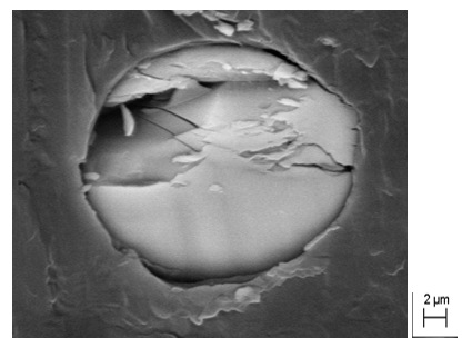 El estudio de la interfase generada entre el refuerzo de fibra de vidrio y la matriz termoplástica se ha realizado mediante microcopía SEM. El microscopio electrónico de barrido (SEM) es un equipo que permite tomar imágenes de los electrones que rebotan de la superficie de la muestra. Se puede trabajar con muestras sólidas conductoras como aislantes. Dispone de un detector de electrones secundarios (SE) que nos da idea de la estructura superficial de la muestra y un detector de electrones retrodispersados (BSD) que da información composicional. El equipo es de la casa ZEISS (modelo EVO50). La preparativa de muestras se ha llevado a cabo con el ultramicrotomo con sistema crio es de la casa Leica (modelo EM FC7), y para lograr una mejor imagen, las muestras se han metalizado con una aleación de Oro-Paladio en alto vacío con el metalizador de Leica (Modelo EM SCD005).