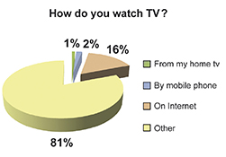 En cuanto al consumo televisivo, al igual que en Francia, se sigue usando el tradicional aparato de televisión para consumir audiovisual (70%). De las otras pantallas posibles, también utilizan el teléfono móvil aunque en menor medida (16%) y siempre en su tiempo libre, aunque la franja horaria de las mañanas es cuando más consumen este medio. La televisión sigue siendo el medio mediante el cual se mantienen informados (27%), pero también son la prensa tradicional (26%) y la prensa online (24%) los siguientes medios mediante los cuales se informan. La mayoría de los británicos conoce y ha hecho uso alguna vez de la televisión a la carta (92%), descargándose el contenido desde la página web del canal de televisión (42%), visionándolo en su tiempo libre (72%) y desde el ordenador fijo de sus hogares (33%).