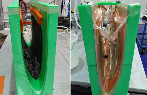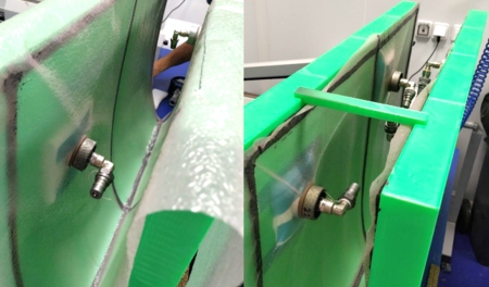Tras realizar las pruebas de vacío al utillaje fabricado, este fue empleado por el departamento de fabricación de materiales compuestos de Titania para realizar la infusión de la pieza.
