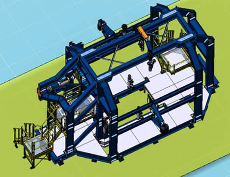 El espécimen fue montado en una estructura diseñada y fabricada por TEAMS, siguiendo los requerimientos del ensayo dados por Alestis.